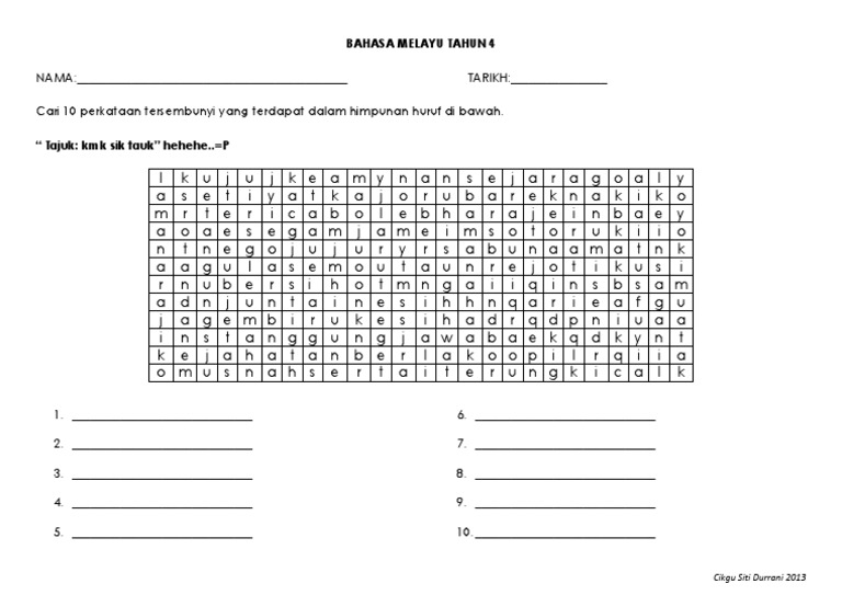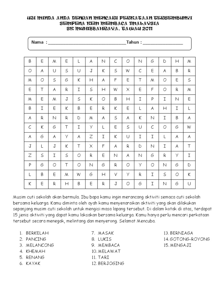 Cari Perkataan Tersembunyi Bahasa Melayu Tahun 1 Lucarkc