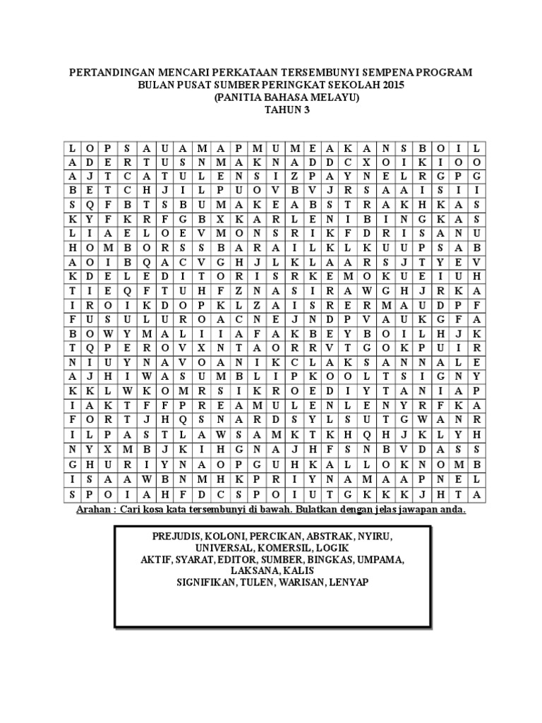 Pertandingan Mencari Perkataan Tersembunyi Sempena Program Bulan Pusat Sumber Peringkat Sekolah 2015 Pdf