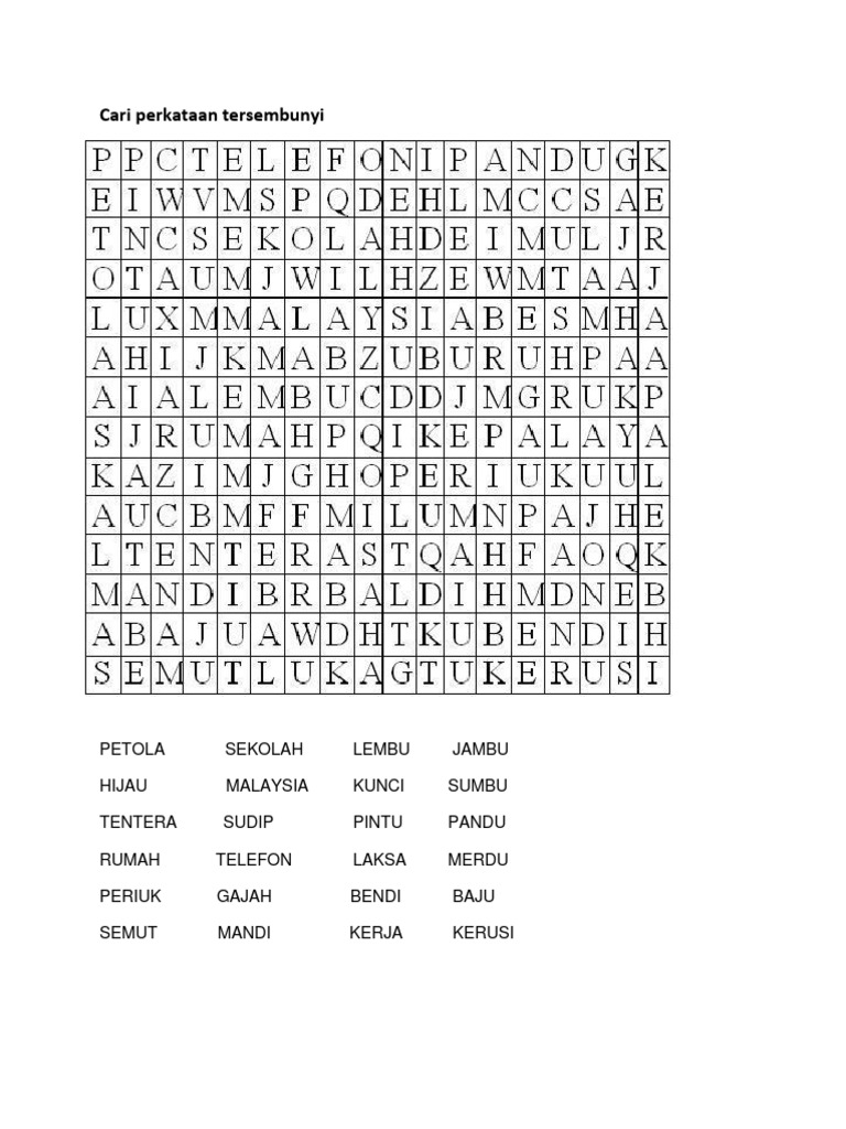 Cari Perkataan Tersembunyi Tahun 1. Cari perkataan tersembunyi memerhati enamel geraham cangkerang herbivor selari magnet tabung uji angsana akar biji benih salur dentin. Cari Perkataan Tersembunyi Bahasa Melayu Sekolah Rendah Englshgant Pelbagai teka silang kata bahasa malaysia tahun 1 yang.