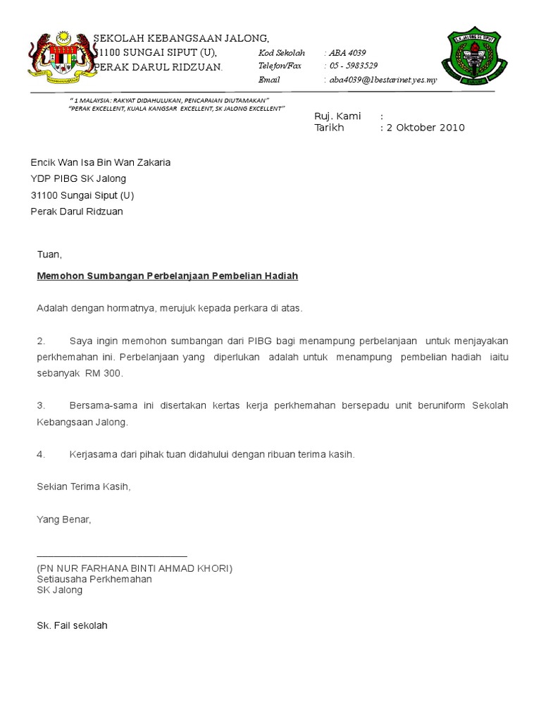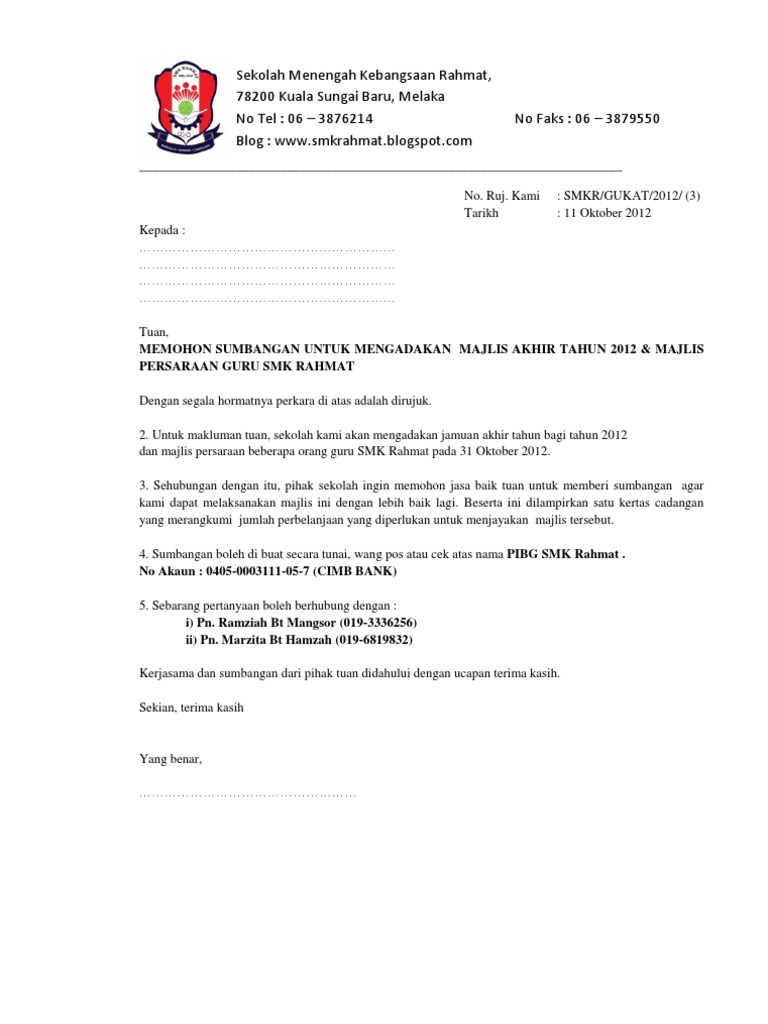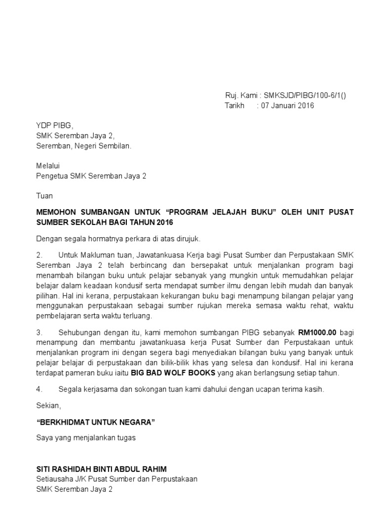 Surat Mohon Sumbangan Pibg Pdf